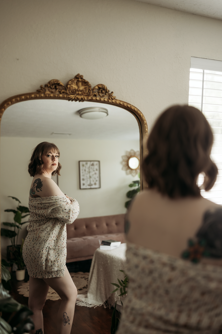 This might seem obvious, but hear me out. Boudoir is most commonly photographed with lingerie, and if you google 'boudoir outfit ideas', that's mostly what you're going to see. But just because it's most common doesn't mean it's your only choice!!